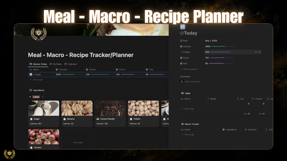 Meal/Macro/Recipe - Planner - Premium Notion Template